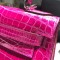 Comes with alligator skin padlock and the two keys, dust bag, sales invoice, repair receipt, craftsman signature and year of make stamp, orange gift bag, and orange gift box with ribbon.