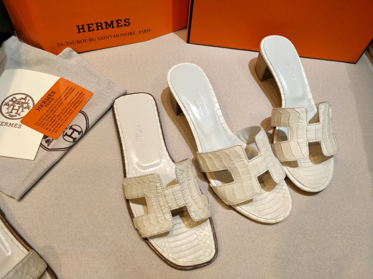 Comes with dust bag, authentication cards, box, shopping bag and pamphlets. Receipts are